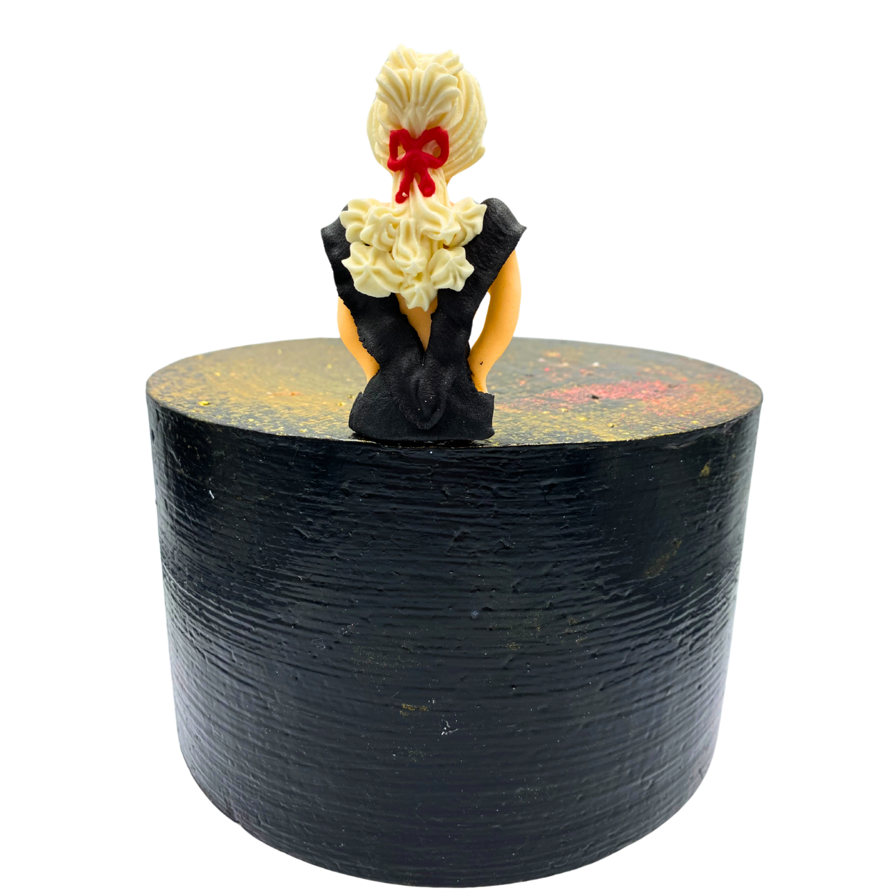 Dekoracja cukrowa w formie topperu przedstawiającego kobietę w czarnej sukience to elegancki dodatek do każdego ciasta lub tortu. Tego rodzaju ozdoba może dodać wyrafinowania i klasy, idealnie pasując na różne okazje, takie jak urodziny, wieczory panieńskie czy przyjęcia tematyczne. Czarna sukienka symbolizuje elegancję i ponadczasowy styl, co czyni ją uniwersalnym wyborem. Topper wykonany z masy cukrowej. Można również dodać drobne elementy dekoracyjne, takie jak brokat czy perły, aby nadać jej dodatkowego blasku. Ta dekoracja z pewnością przyciągnie wzrok gości i stanie się centralnym punktem przyjęcia.