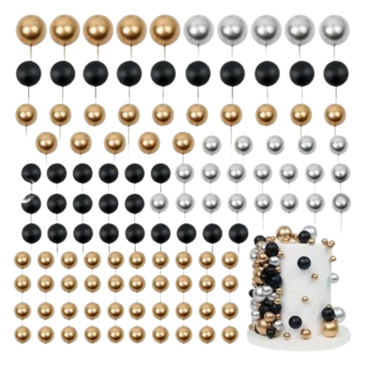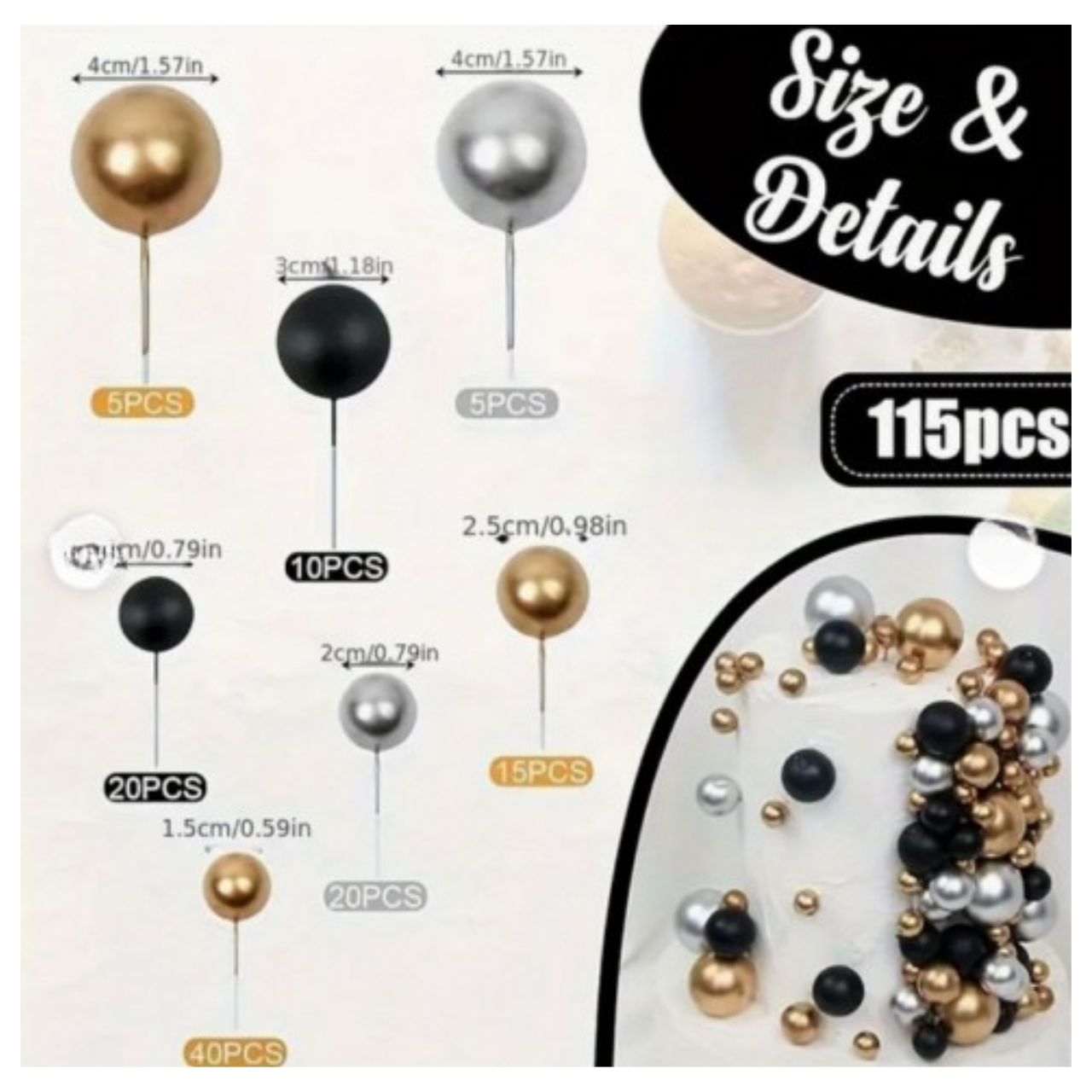 Dekoracja na tort kuleczki na piku w kolorach złoto-srebrno-czarnych to doskonały sposób na dodanie elegancji i nowoczesności do każdej uroczystości. Taki topper świetnie sprawdzi się zarówno na przyjęciach urodzinowych, jak i bardziej formalnych okazjach, takich jak wesela czy jubileusze. Kuleczki umieszczone na piku można łatwo wbić w tort, co czyni je nie tylko estetycznym, ale i praktycznym dodatkiem. Zestaw 115 sztuk pozwala na dowolne rozmieszczenie dekoracji, tworząc unikalny i stylowy efekt. Kolorystyka złota, srebra i czerni nadaje tortowi wyrafinowanego charakteru, który z pewnością przyciągnie uwagę gości.