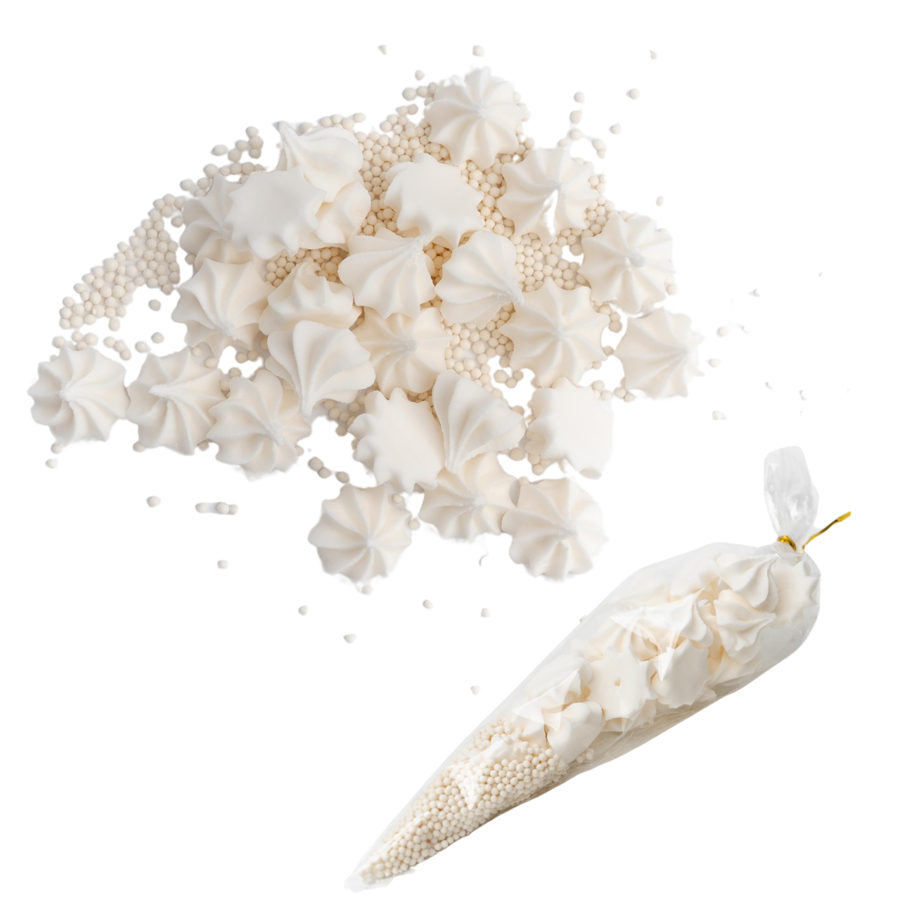 Zestaw cukrowy Mini Bezy białe i posypka to uroczy i słodki dodatek do wypieków lub deserów. Mini Bezy mogą stanowić centralny element dekoracji. Bezy cukrowe, w liczbie 24 sztuk, mogą być wykorzystane jako delikatne, chrupiące przekąski lub ozdoby na torcie. Posypka w formie białego maczku pozwala na kreatywną dekorację, dodając tekstury. Ten zestaw jest idealny dla każdego, kto chce dodać odrobinę słodkiego uroku do swoich kulinarnych dzieł.