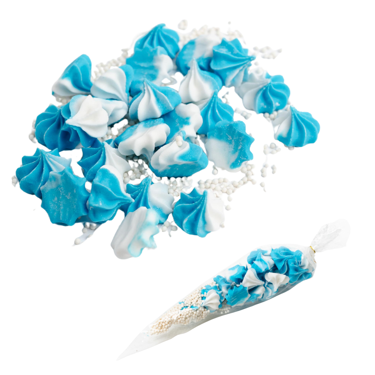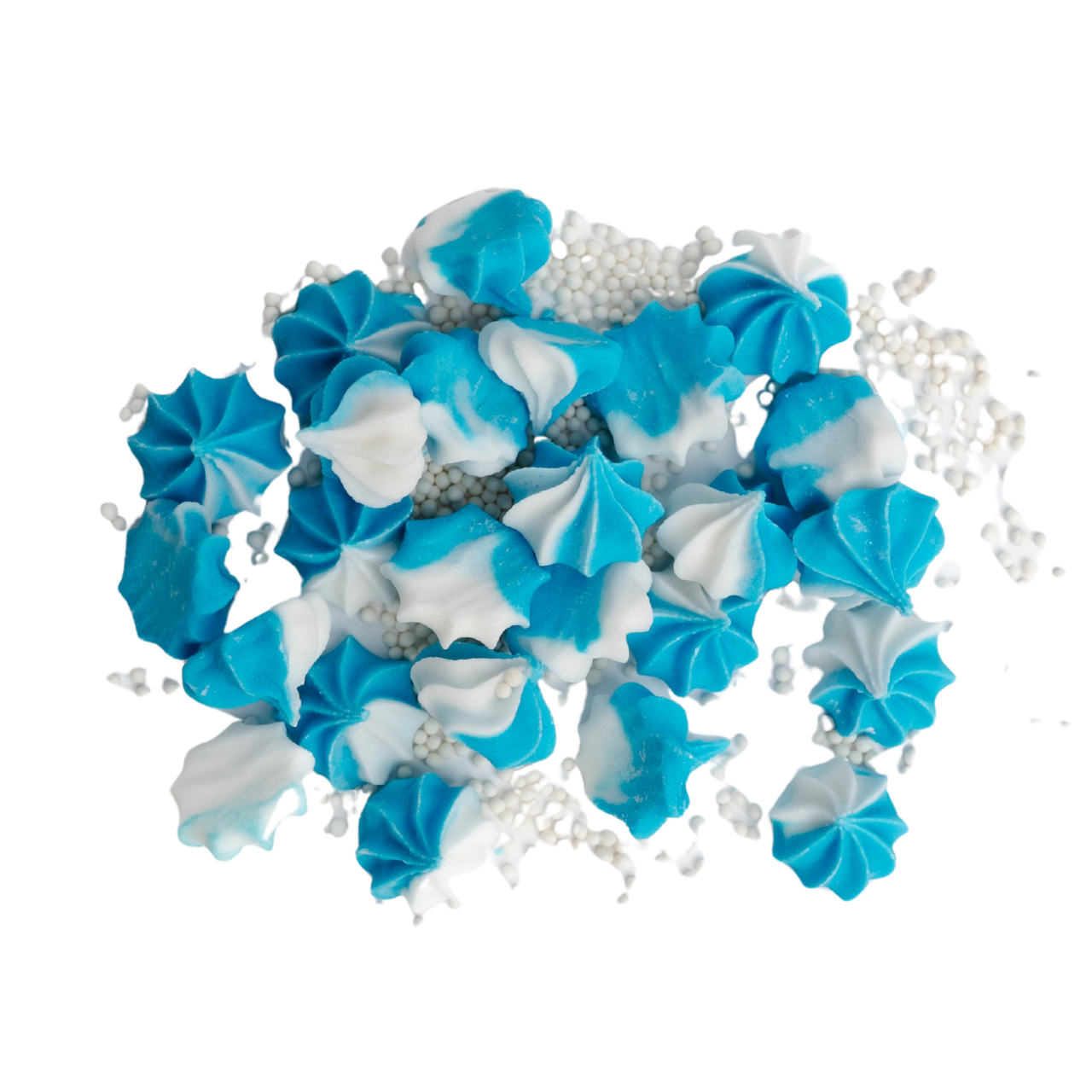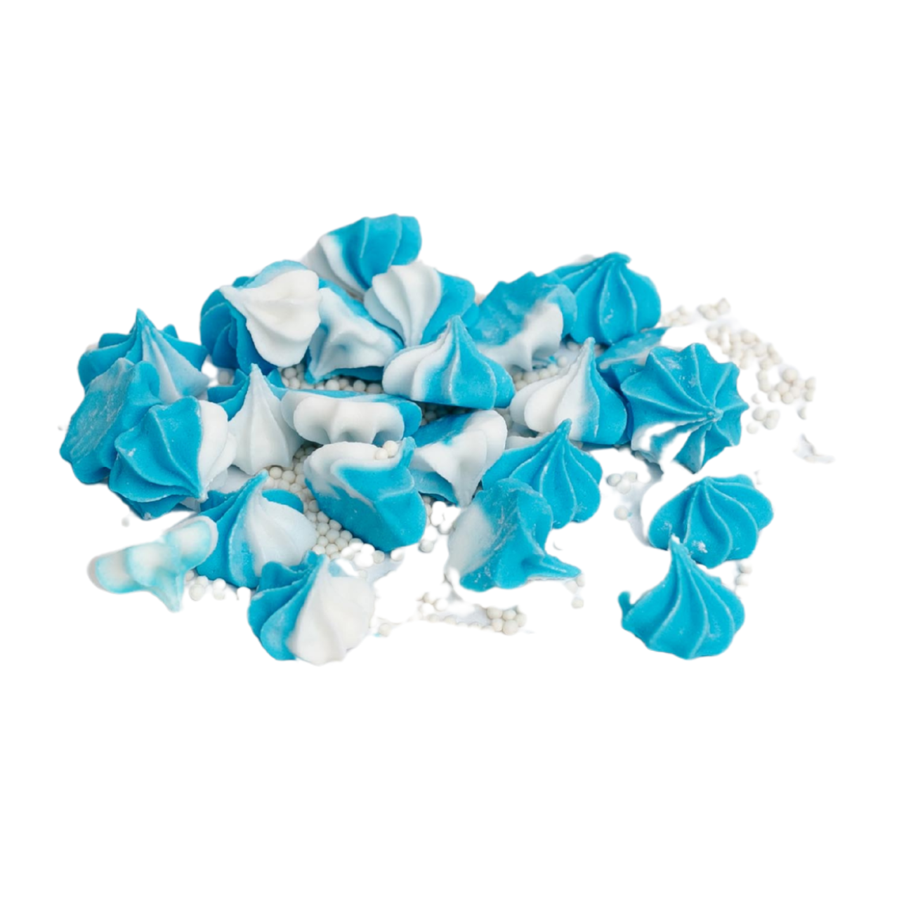 Zestaw cukrowy Mini Bezy niebiesko-białe i posypka to uroczy i słodki dodatek do wypieków lub deserów. Mini Bezy mogą stanowić centralny element dekoracji. Bezy cukrowe, w liczbie 24 sztuk, mogą być wykorzystane jako delikatne, chrupiące przekąski lub ozdoby na torcie. Posypka w formie białego maczku pozwala na kreatywną dekorację, dodając tekstury. Ten zestaw jest idealny dla każdego, kto chce dodać odrobinę słodkiego uroku do swoich kulinarnych dzieł.