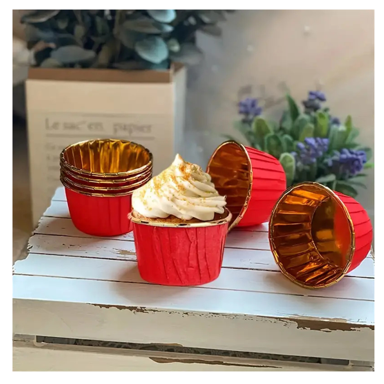 Przedstawione papilotki są sztywne w kształcie kubeczka, ze ściankami w formie zakładek w kolorze  złota. Są odporne na tłuszcz, wysoką temperaturę i wilgoć oddawaną przez ciasto podczas pieczenia. Dzięki swojej konstrukcji są sztywne i nie wymagają użycia blaszki do pieczenia muffinek. Nie przemiękają. Pięknie wyglądają po upieczeniu.