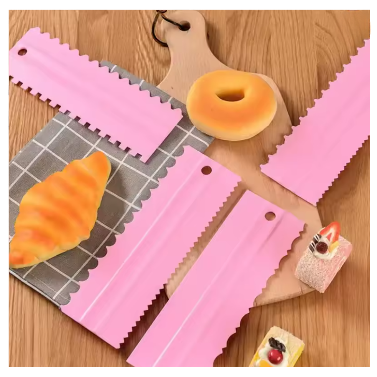 Zestaw skrobek plastikowych do dekorowania tortu to niezbędnik w arsenale każdego miłośnika pieczenia i dekorowania ciast. W skład zestawu wchodzą cztery skrobki o różnych kształtach i fakturach, które umożliwiają tworzenie różnorodnych wzorów i tekstur na kremie. Skrobki te wykonane są z wysokiej jakości plastiku, co zapewnia ich trwałość i łatwość w czyszczeniu po użyciu. Dzięki ergonomicznej konstrukcji, są wygodne w użyciu i pozwalają na precyzyjne wykończenie każdego tortu. Niezależnie od tego, czy jesteś profesjonalnym cukiernikiem, czy amatorem, ten zestaw pomoże Ci w pełni rozwinąć kreatywność w dekoracji wypieków.