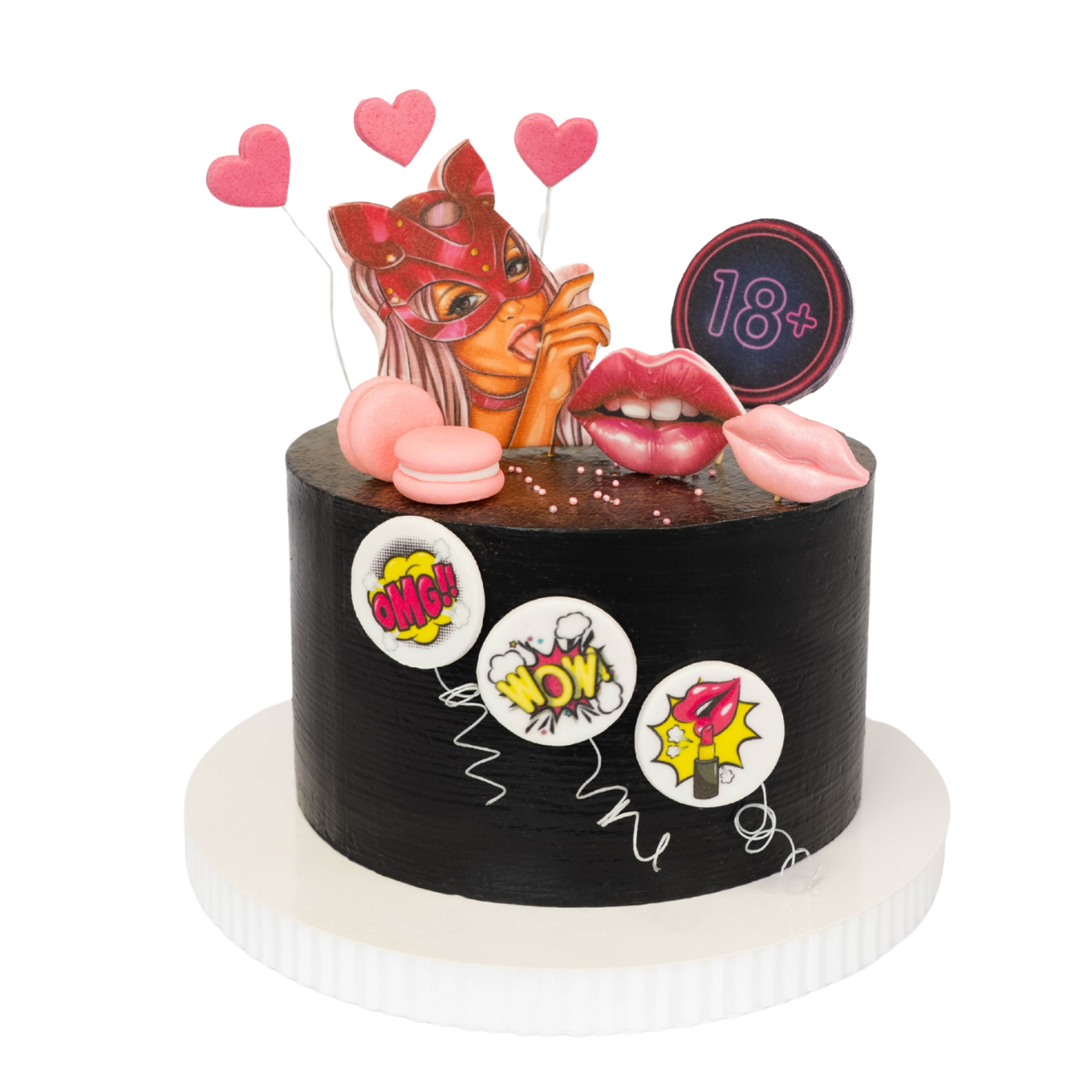 Chcesz zrobić niezapomniany tort na wieczór kawalerski bądź 18-stkę polecamy nasz zestaw figurek cukrowych 2D. Zestaw przedstawia kobietę w masce kota, dodatkowo są jeszcze elementy do dekoracji takie jak usta, serduszka, kajdanki. Figurki wykonane są z masy cukrowej, są wspaniałą dekoracją tortów urodzinowych dla dorosłych.